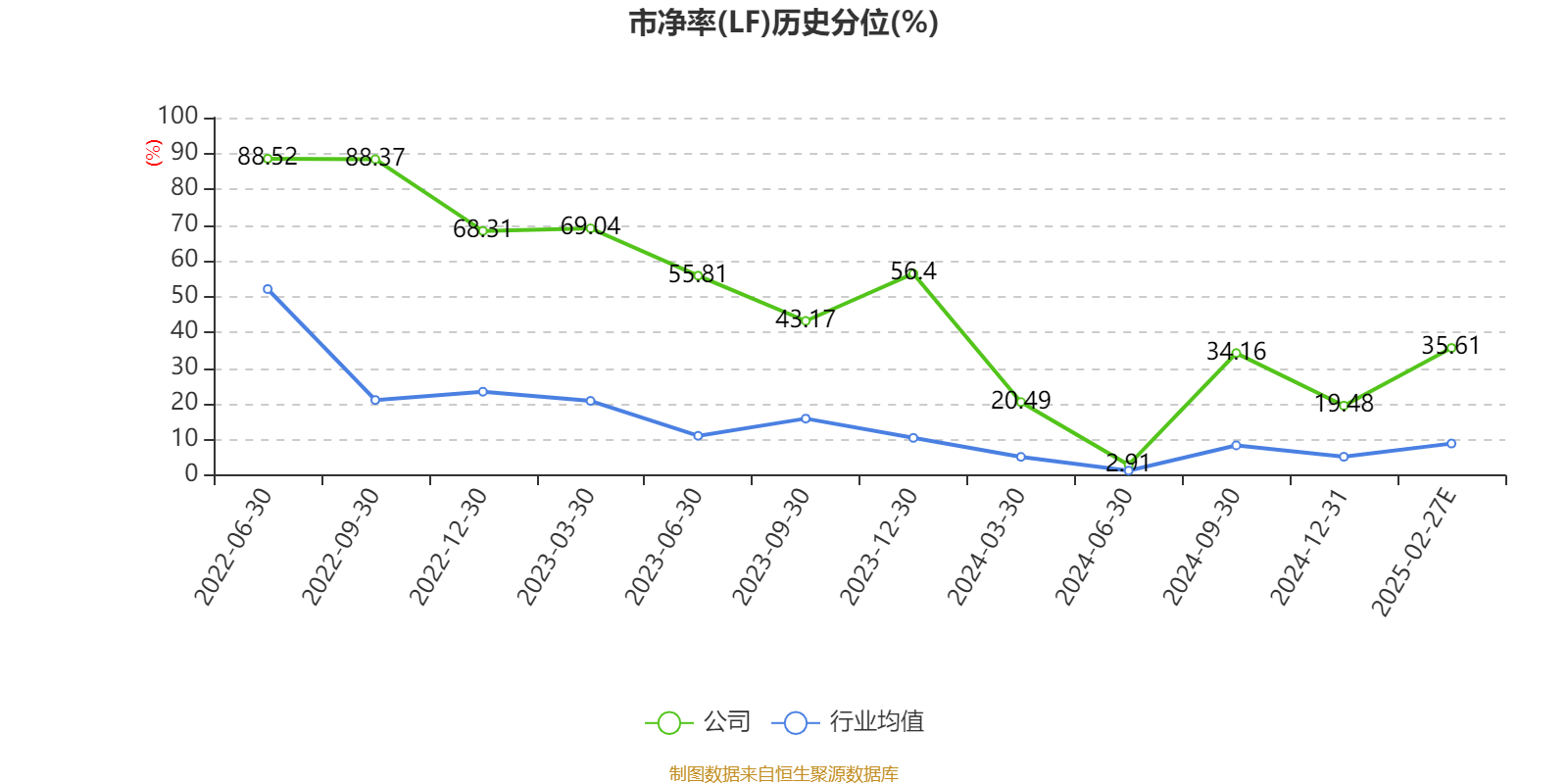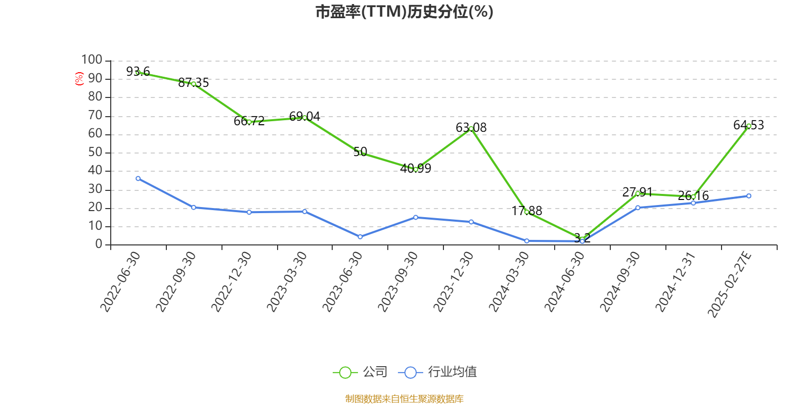 市盈率、市净率为负时,不显示当期分位数,会导致折线图中断。