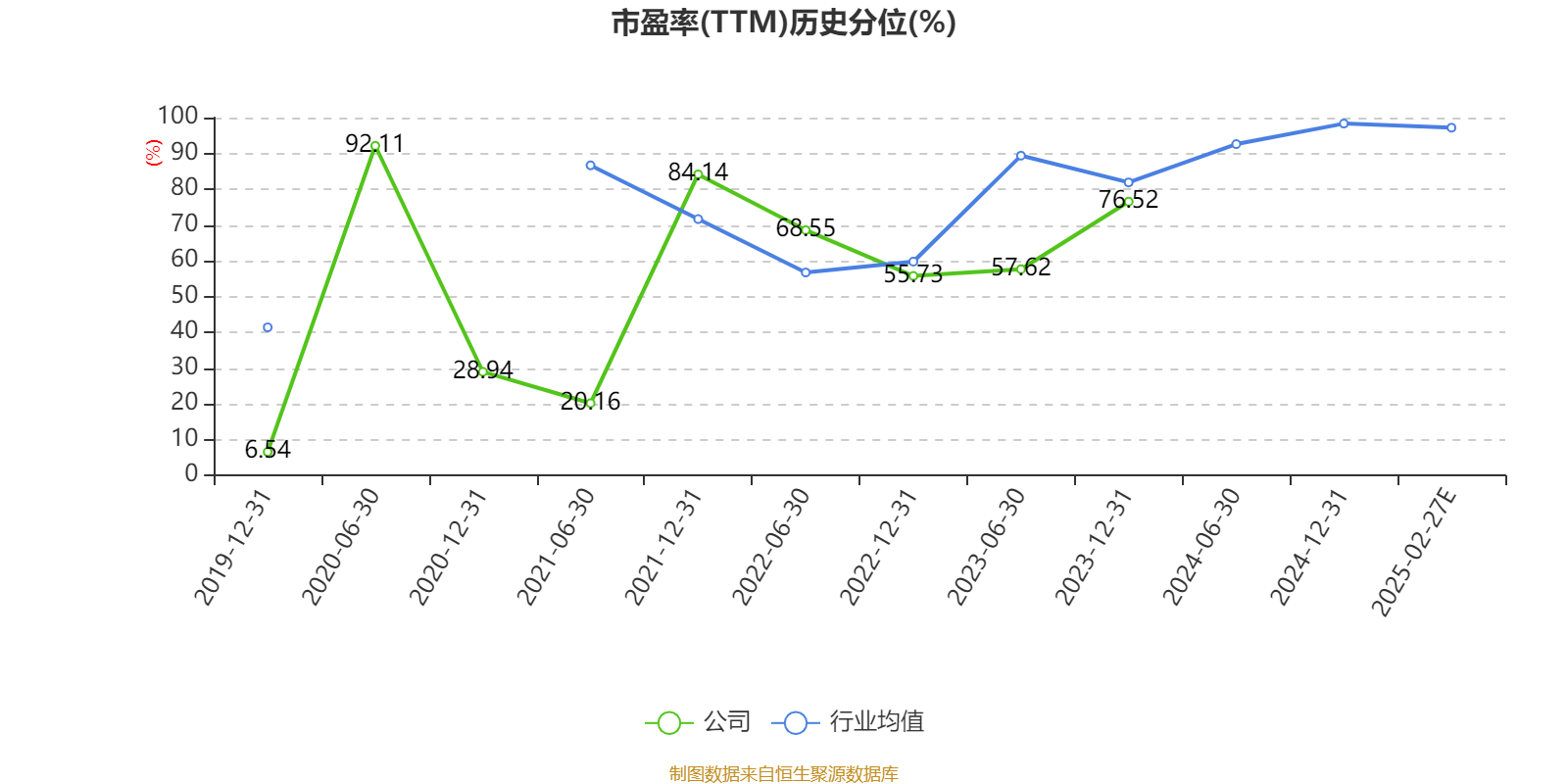 市盈率、市净率为负时,不显示当期分位数,会导致折线图中断。