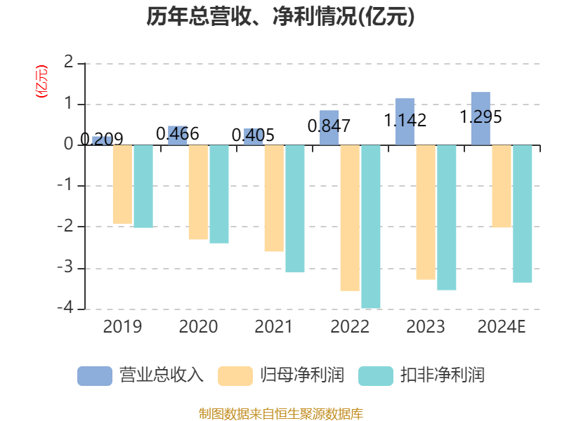 中证智能财讯前沿生物(688221)2月27日晚间披露2024年业绩快报,公司实现营业收入1.29亿元,同比增长13.32%;归母净利润亏损2.02亿元,上年同期亏损3.29亿元;扣非净利润亏损3.36亿元,上年同期亏损3.55亿元;基本每股收益-0.54元,加权平均净资产收益率为-16.23%。以最新收盘价计算,市净率(LF)约3.35倍,市销率(TTM)约28.78倍。