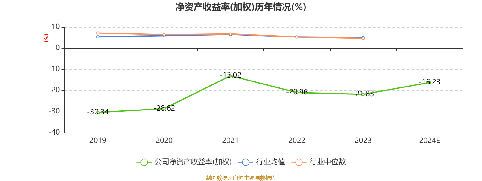 数据显示,2024年公司加权平均净资产收益率为-16.23%,较上年同期上升5.6个百分点。