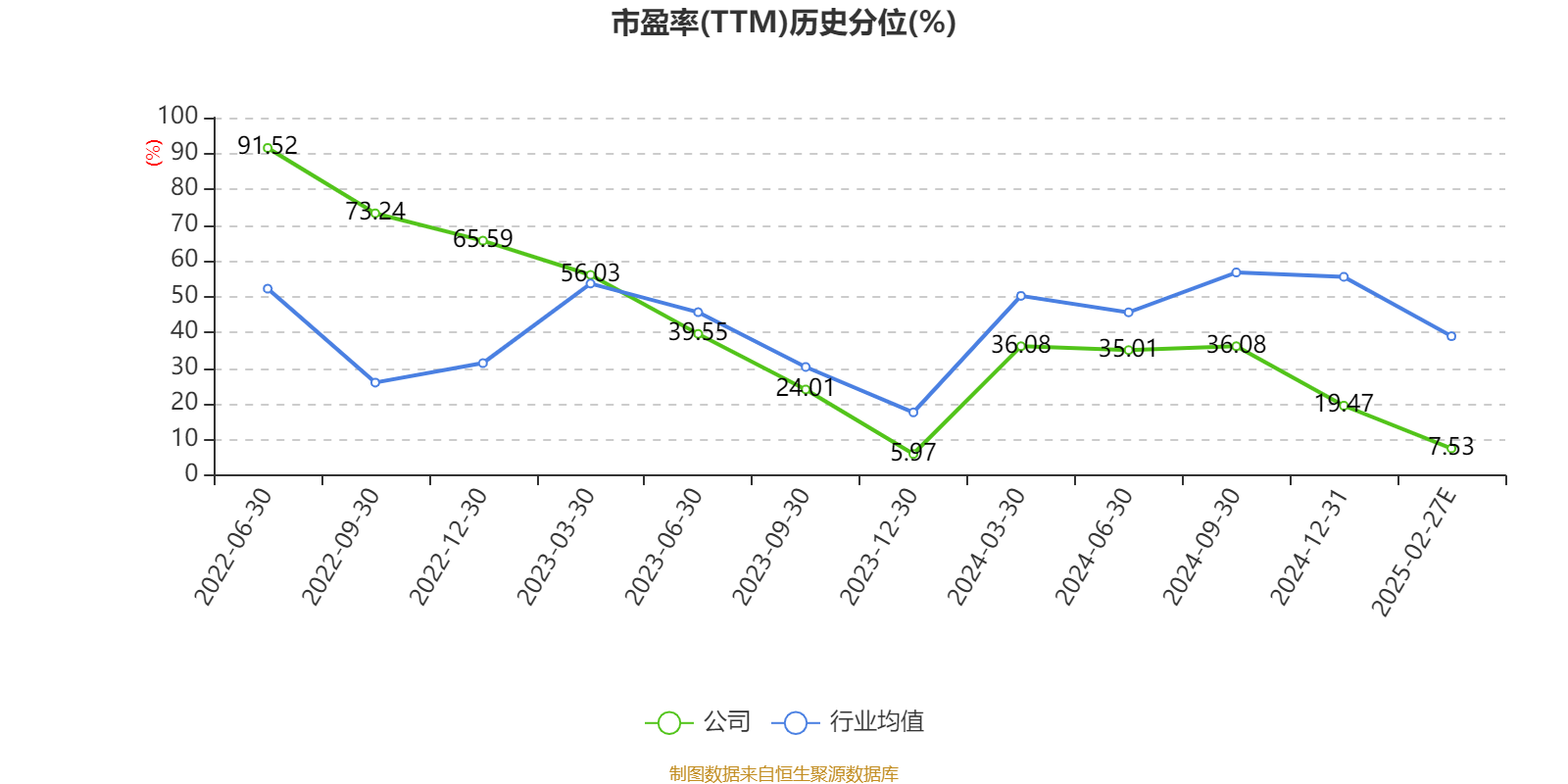 市盈率、市净率为负时,不显示当期分位数,会导致折线图中断。