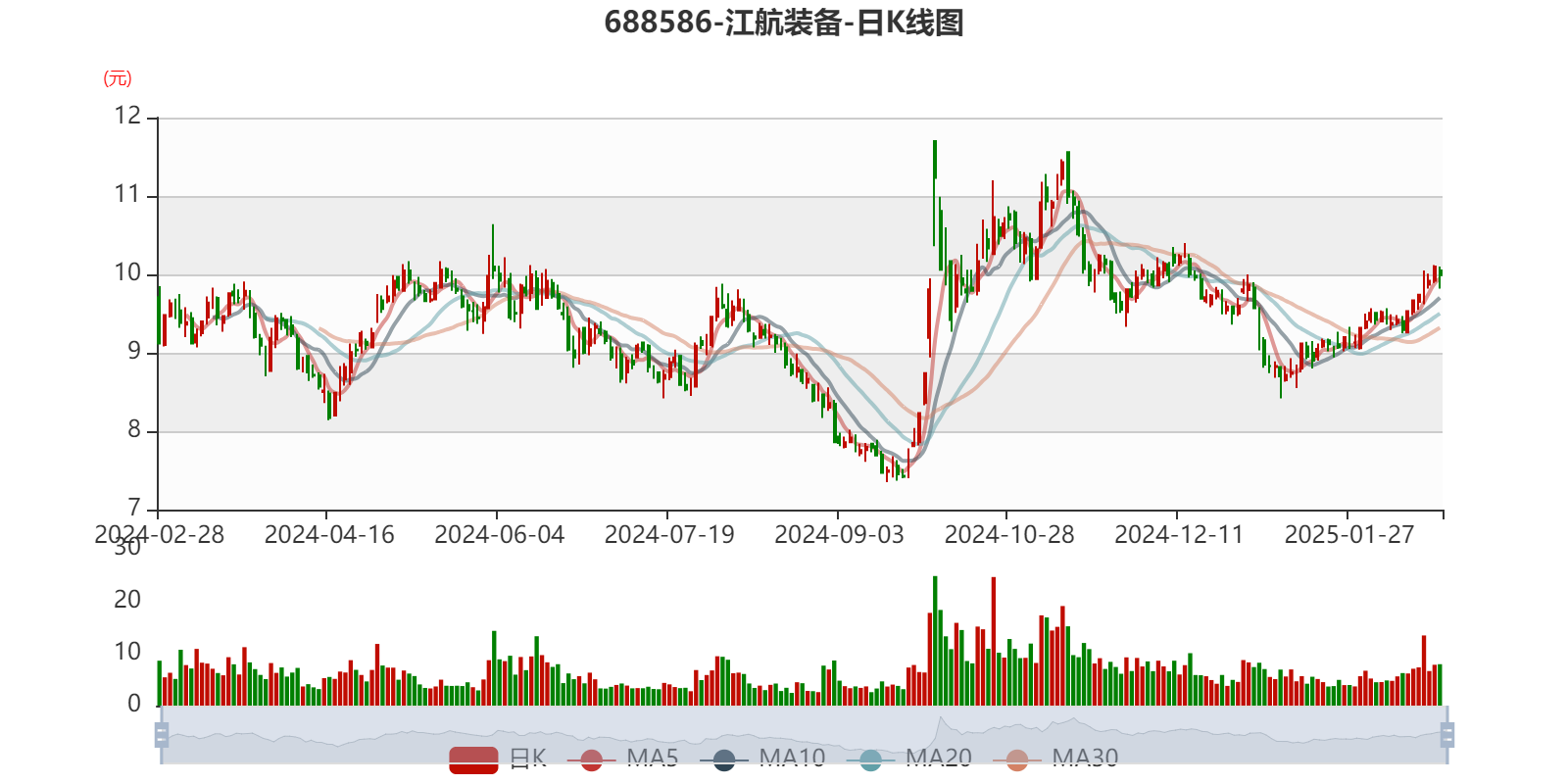中证智能财讯江航装备(688586)2月27日晚间披露2024年业绩快报,公司实现营业收入10.93亿元,同比下降9.98%;归母净利润1.25亿元,同比下降35.02%;扣非净利润1.04亿元,同比下降34.97%;基本每股收益0.16元,加权平均净资产收益率为5.32%。以2月27日收盘价计算,江航装备目前市盈率(TTM)约为63.04倍,市净率(LF)约3.14倍,市销率(TTM)约7.22倍。