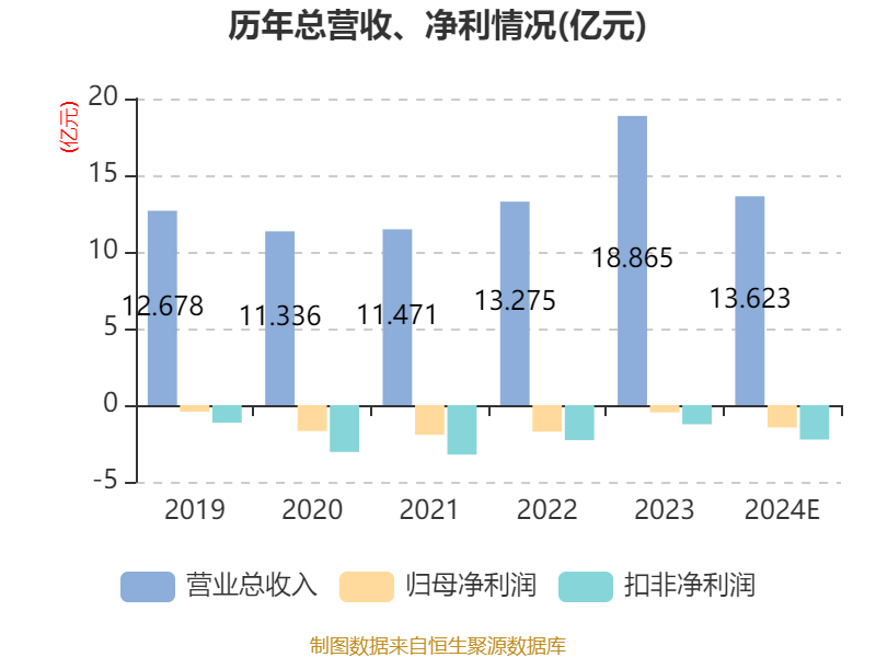 中证智能财讯埃夫特(688165)2月27日晚间披露2024年业绩快报,公司实现营业收入13.62亿元,同比下降27.79%;归母净利润亏损1.46亿元,上年同期亏损4744.8万元;扣非净利润亏损2.25亿元,上年同期亏损1.24亿元;基本每股收益-0.28元,加权平均净资产收益率为-8.46%。以最新收盘价计算,市净率(LF)约11.99倍,市销率(TTM)约13.76倍。