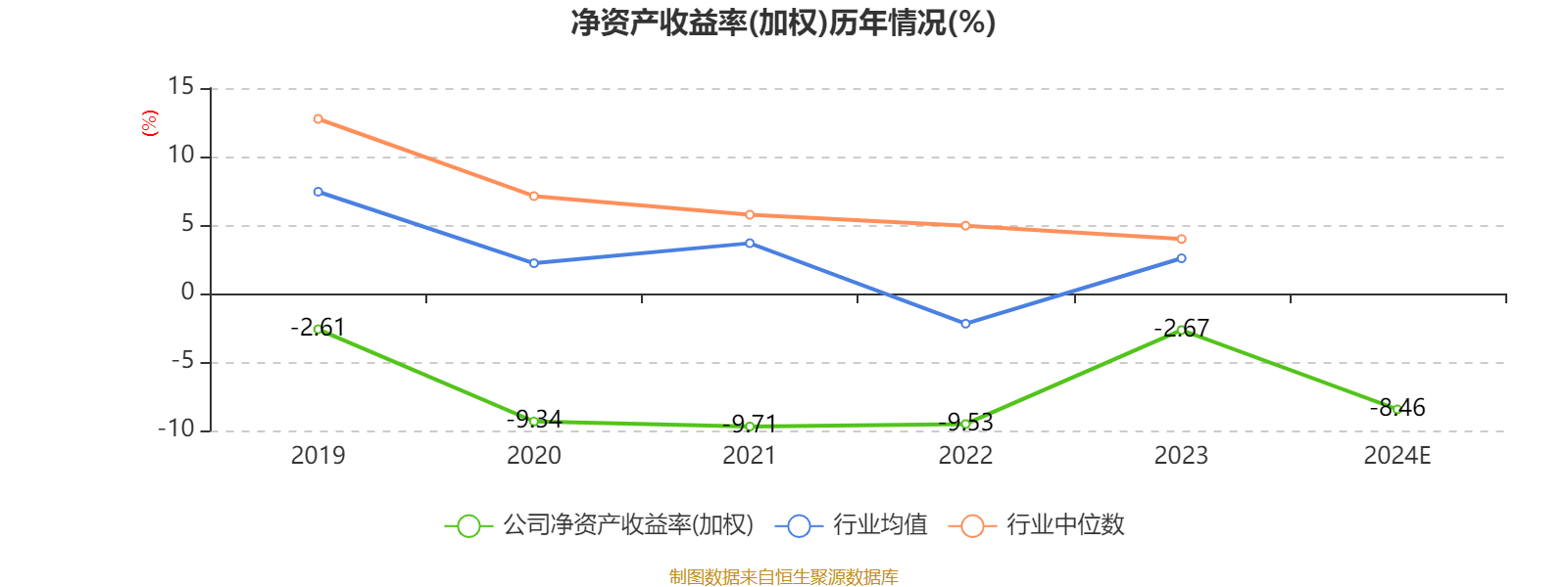 数据显示,2024年公司加权平均净资产收益率为-8.46%,较上年同期下降5.79个百分点。