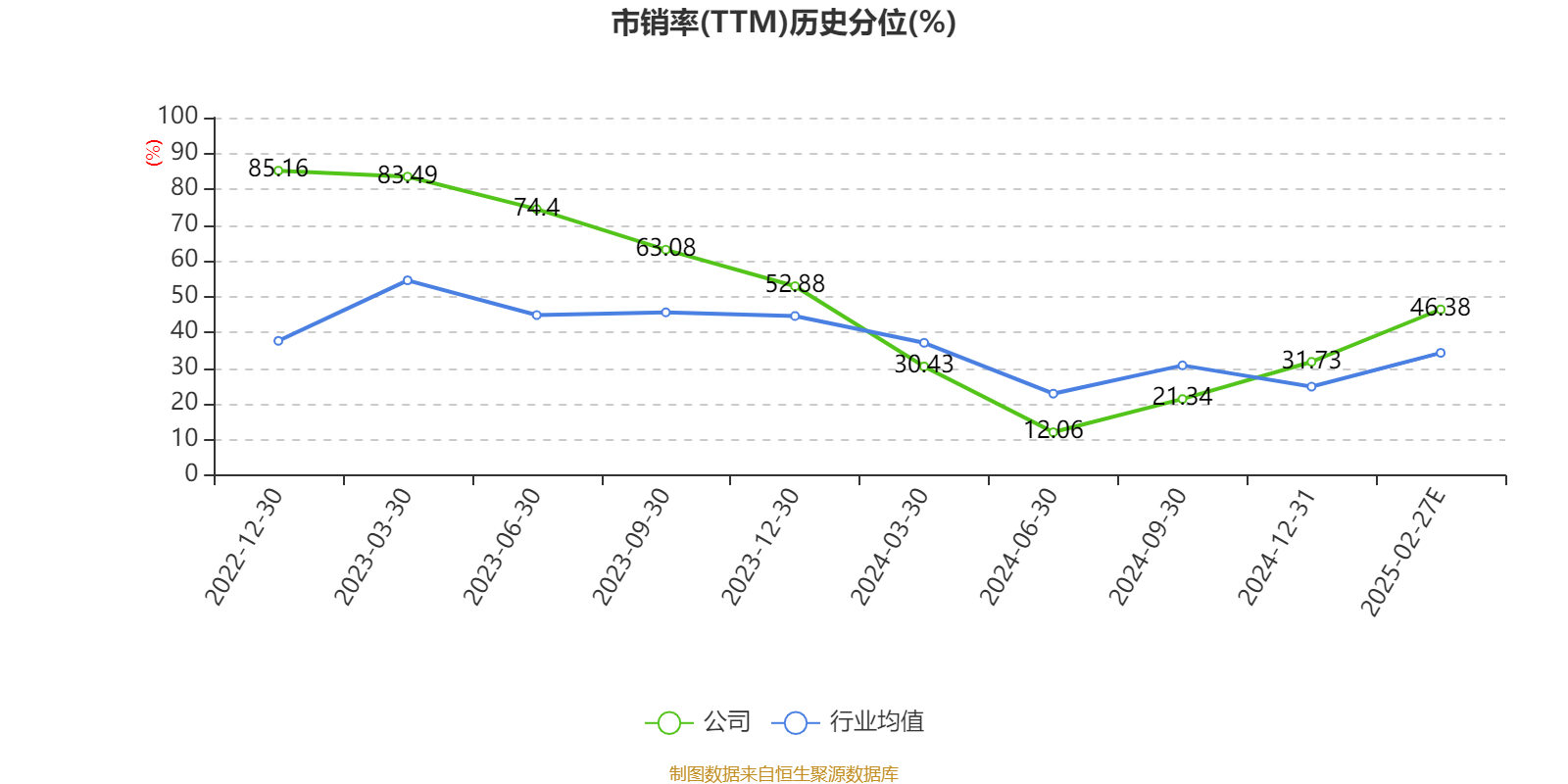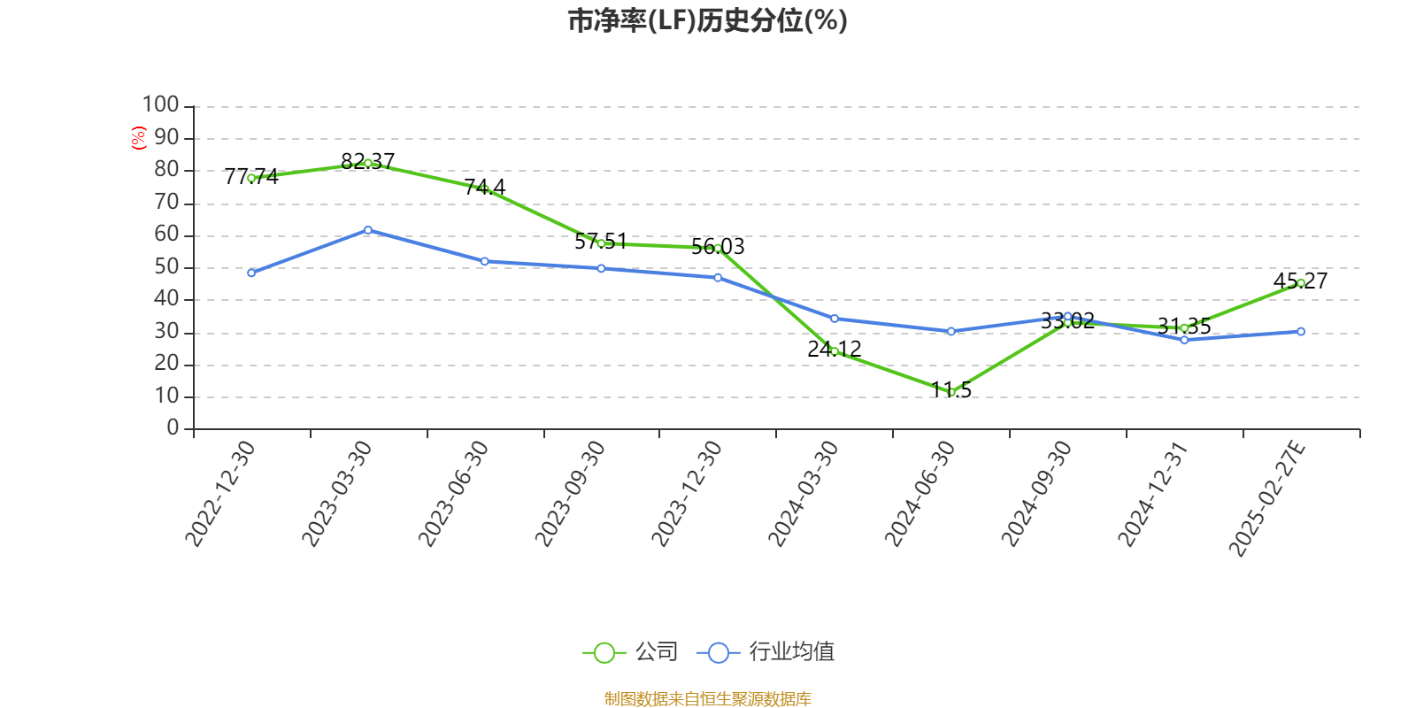 市盈率、市净率为负时,不显示当期分位数,会导致折线图中断。