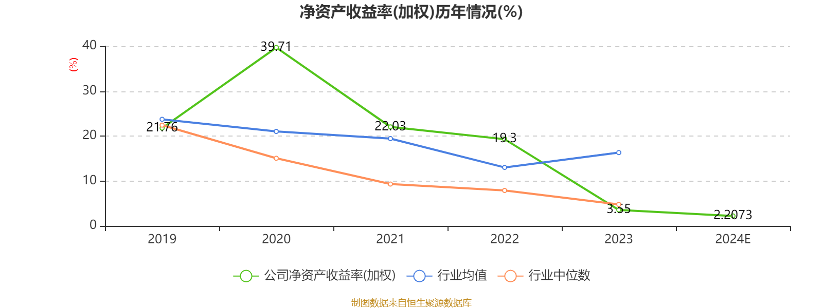 数据显示,2024年公司加权平均净资产收益率为2.2073%,较上年同期下降1.34个百分点。