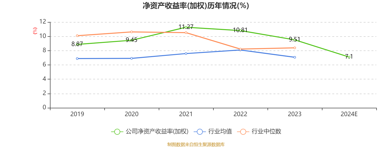 数据显示,2024年公司加权平均净资产收益率为7.1%,较上年同期下降2.41个百分点。