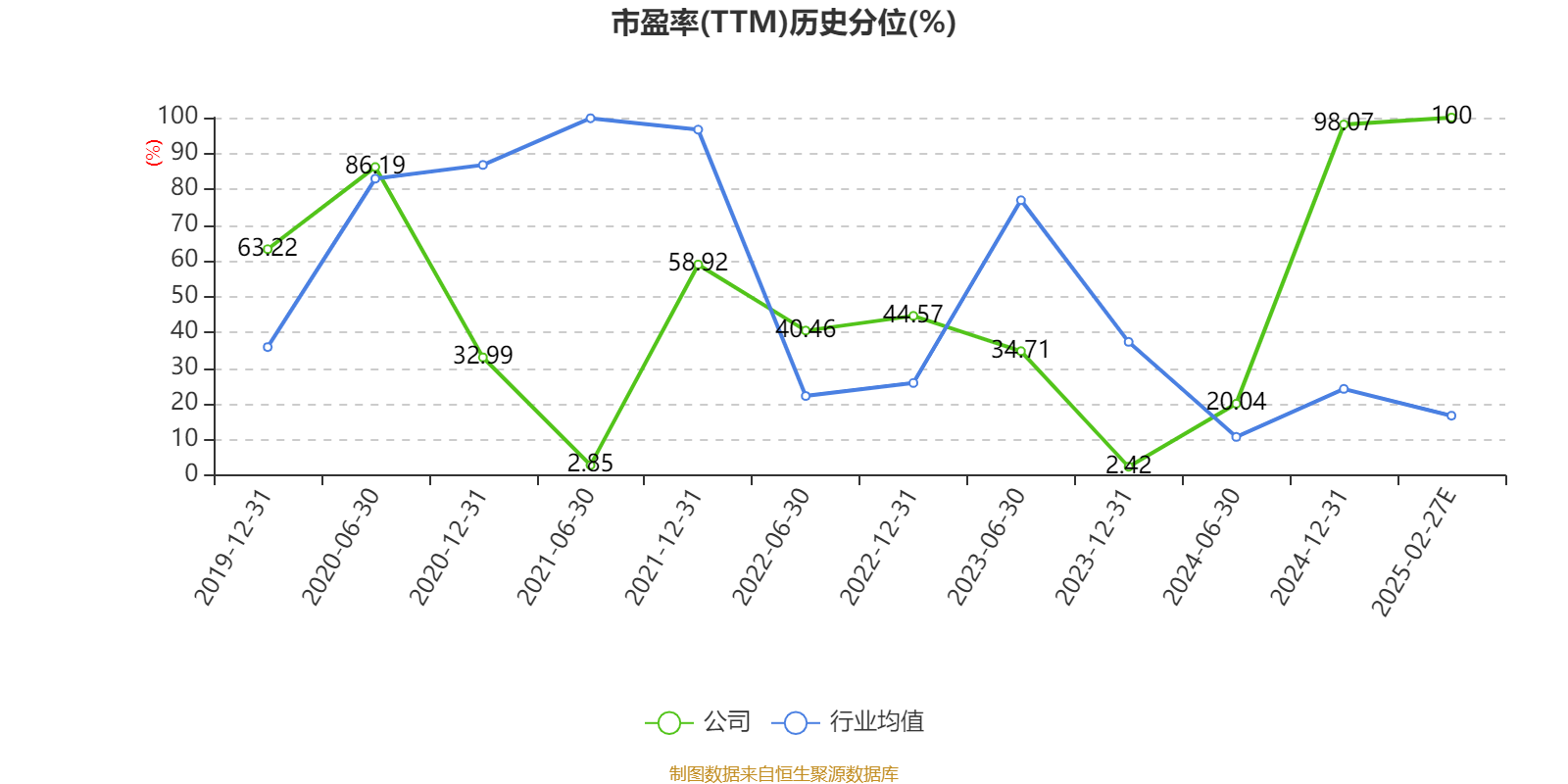 市盈率、市净率为负时,不显示当期分位数,会导致折线图中断。