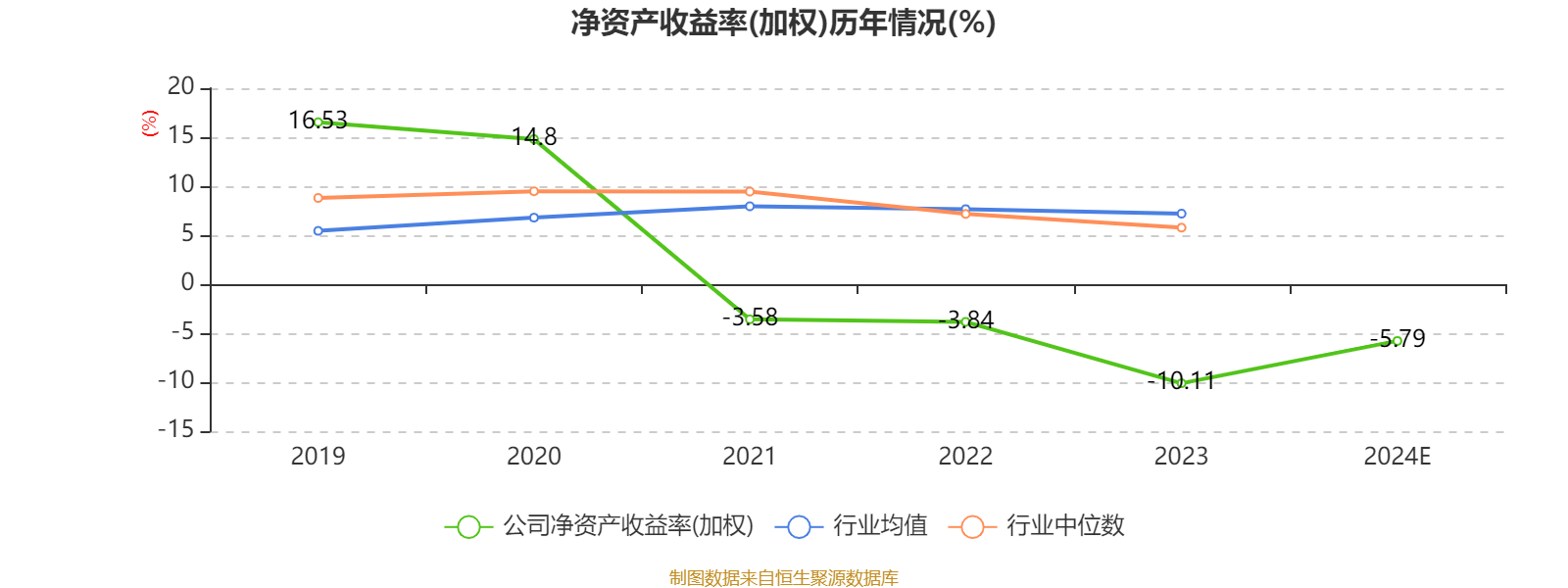 数据显示,2024年公司加权平均净资产收益率为-5.79%,较上年同期上升4.32个百分点。