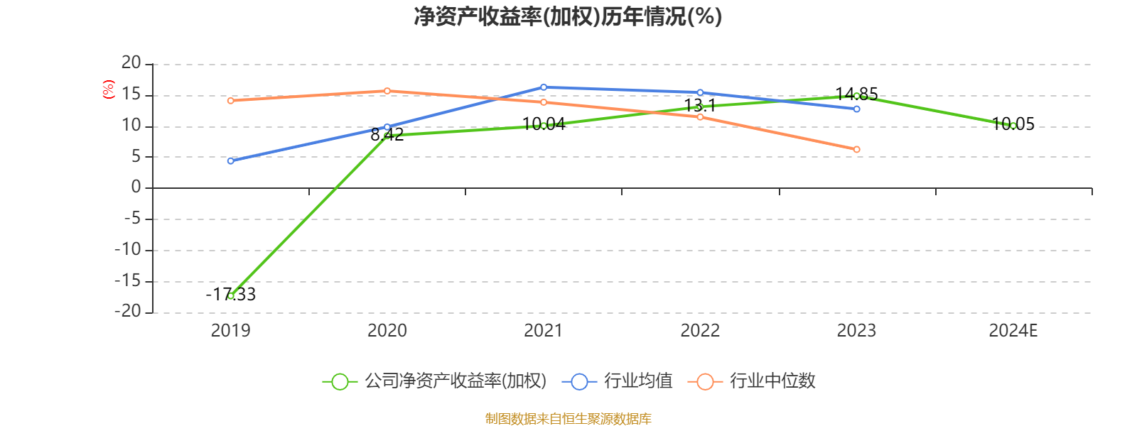 数据显示,2024年公司加权平均净资产收益率为10.05%,较上年同期下降4.8个百分点。