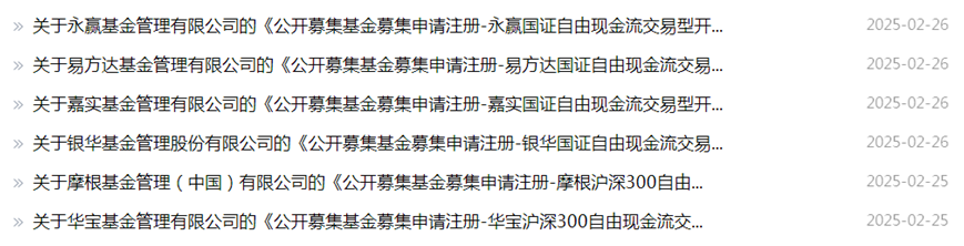 2月26日,易方达、嘉实、银华、永赢四家头部公司集中申报跟踪国证自由现金流指数的ETF。2月25日,华宝基金、摩根基金也申报了沪深300自由现金流ETF。
