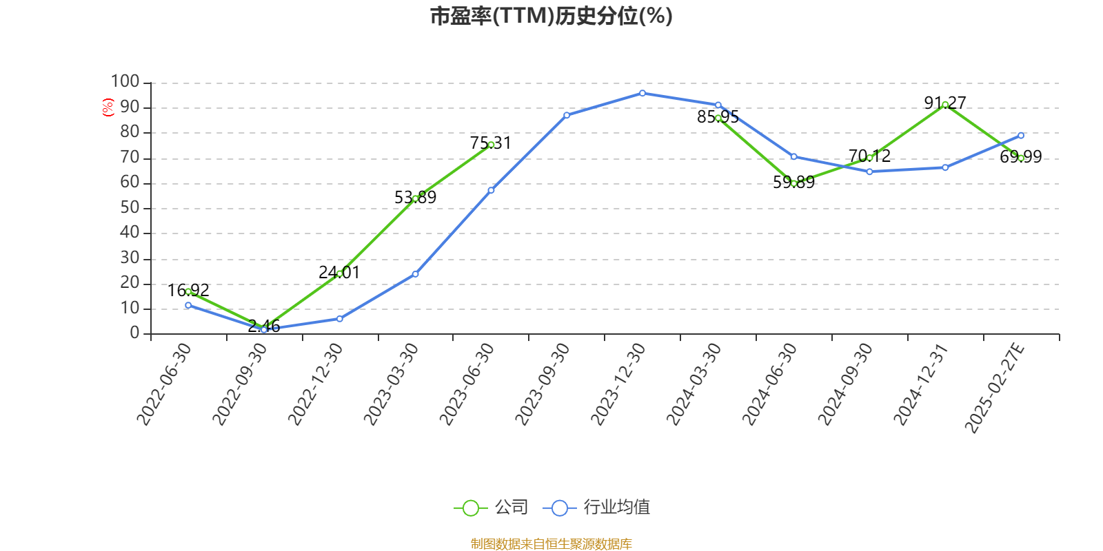 市盈率、市净率为负时,不显示当期分位数,会导致折线图中断。