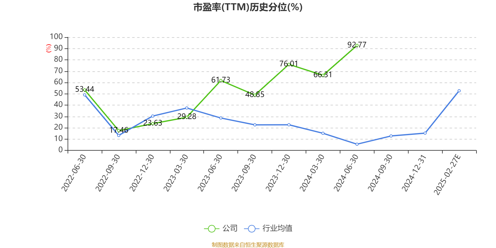 市盈率、市净率为负时,不显示当期分位数,会导致折线图中断。