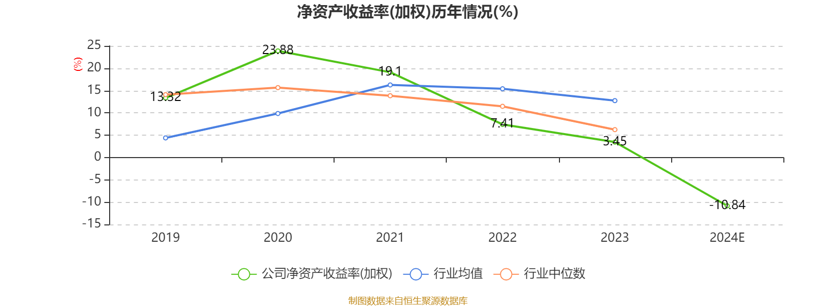 数据显示,2024年公司加权平均净资产收益率为-10.84%,较上年同期下降14.29个百分点。