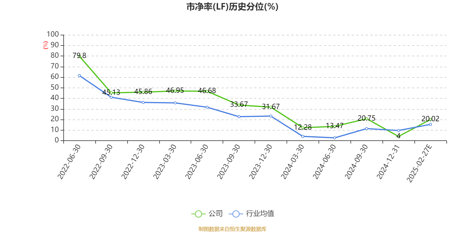 市盈率、市净率为负时,不显示当期分位数,会导致折线图中断。