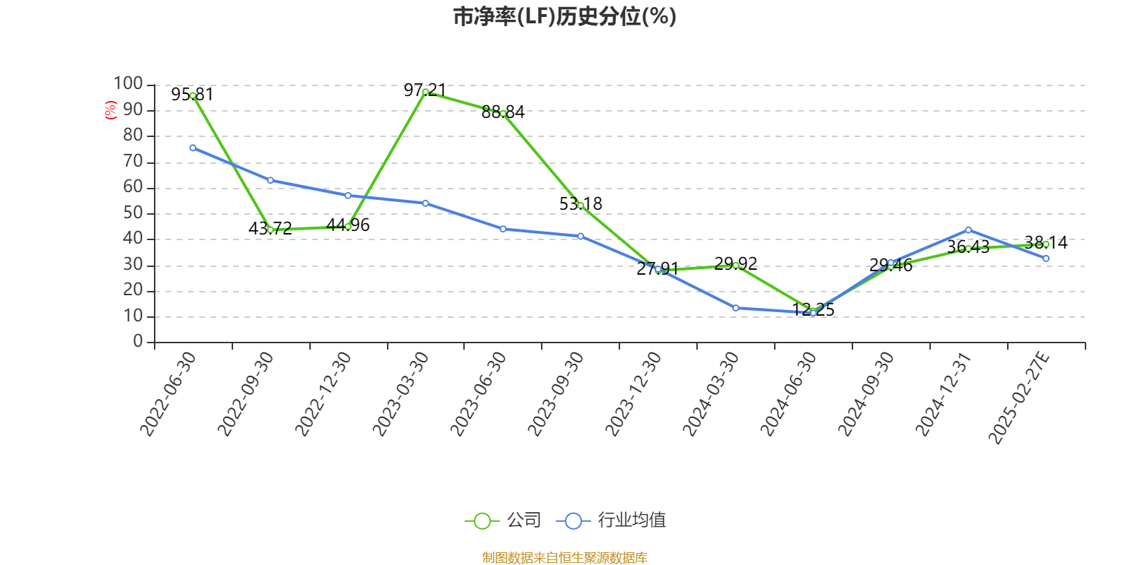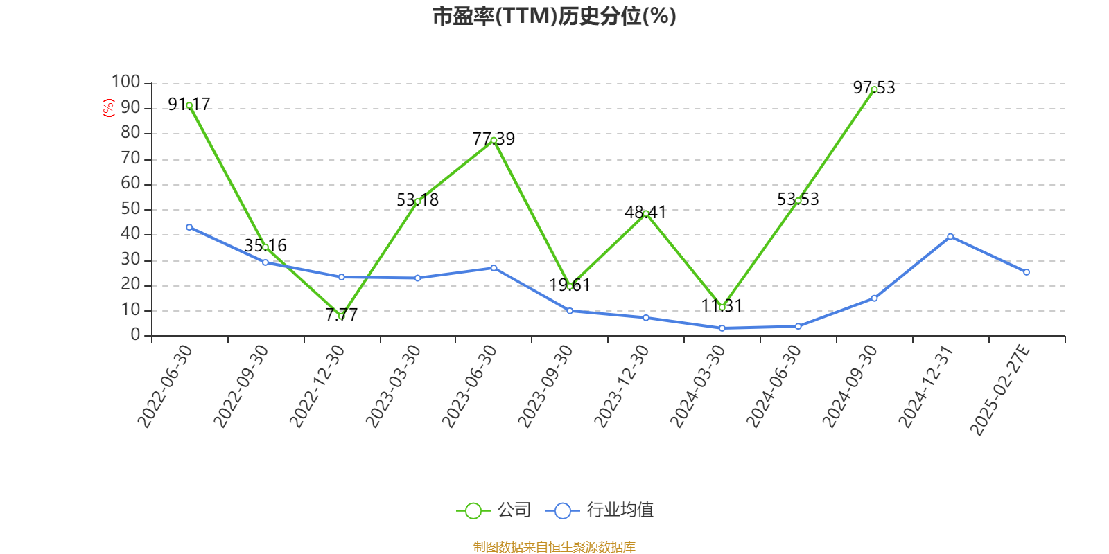 市盈率、市净率为负时,不显示当期分位数,会导致折线图中断。