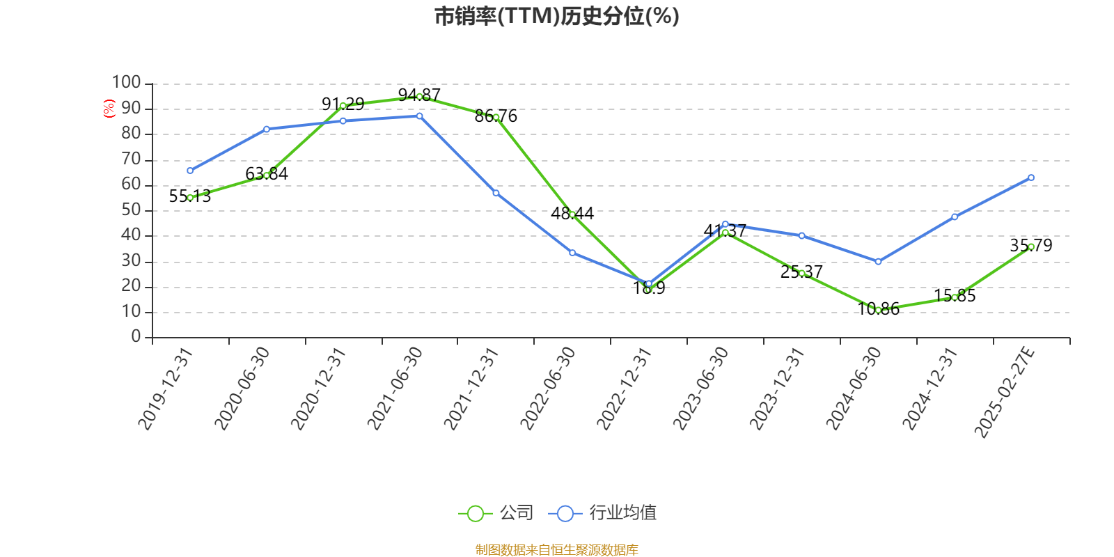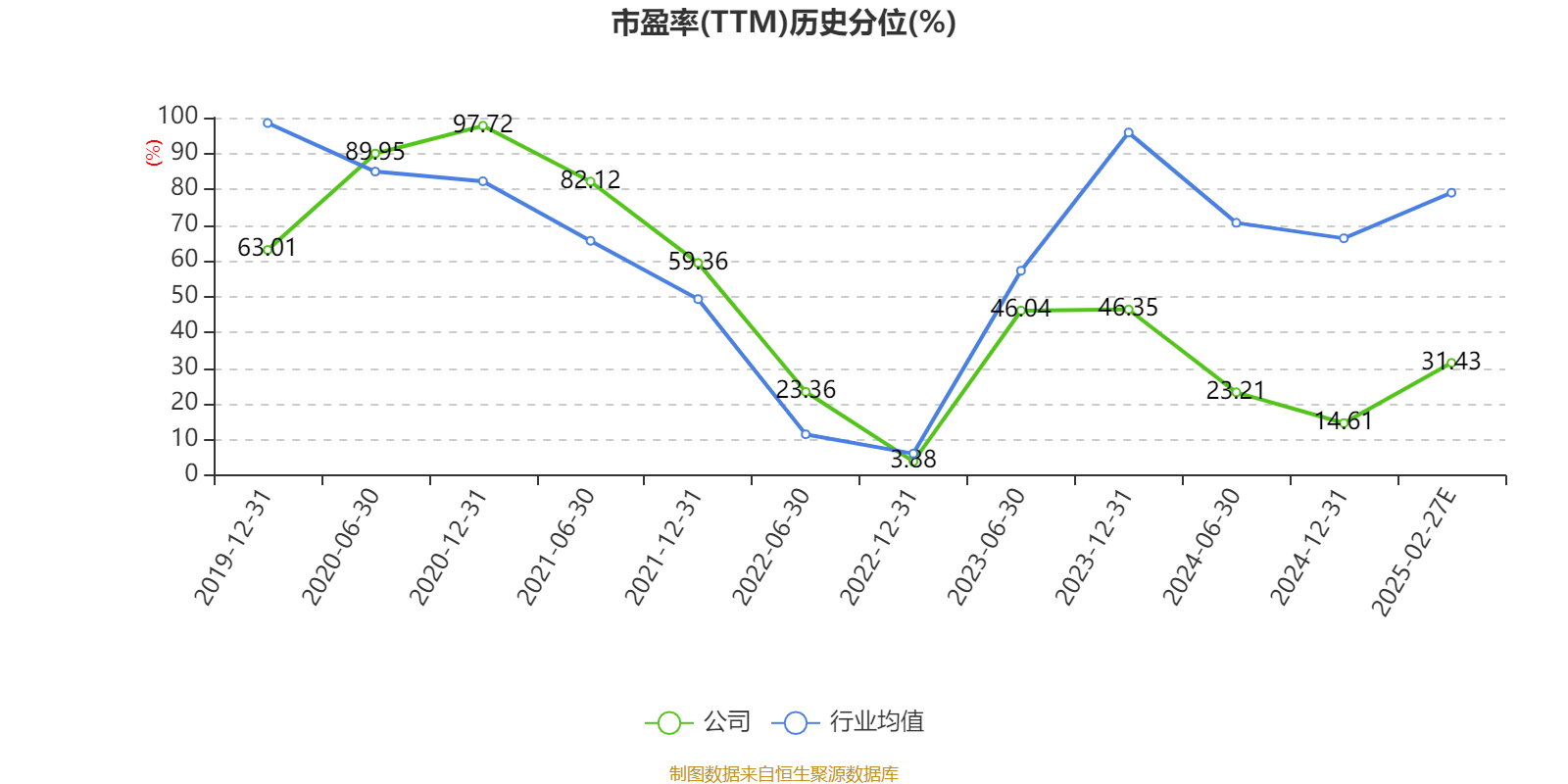 市盈率、市净率为负时,不显示当期分位数,会导致折线图中断。