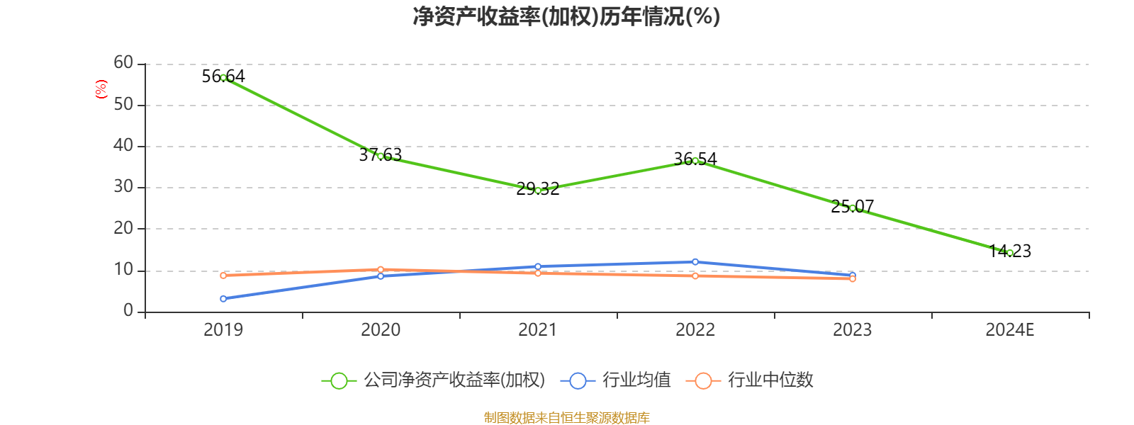 数据显示,2024年公司加权平均净资产收益率为14.23%,较上年同期下降10.84个百分点。