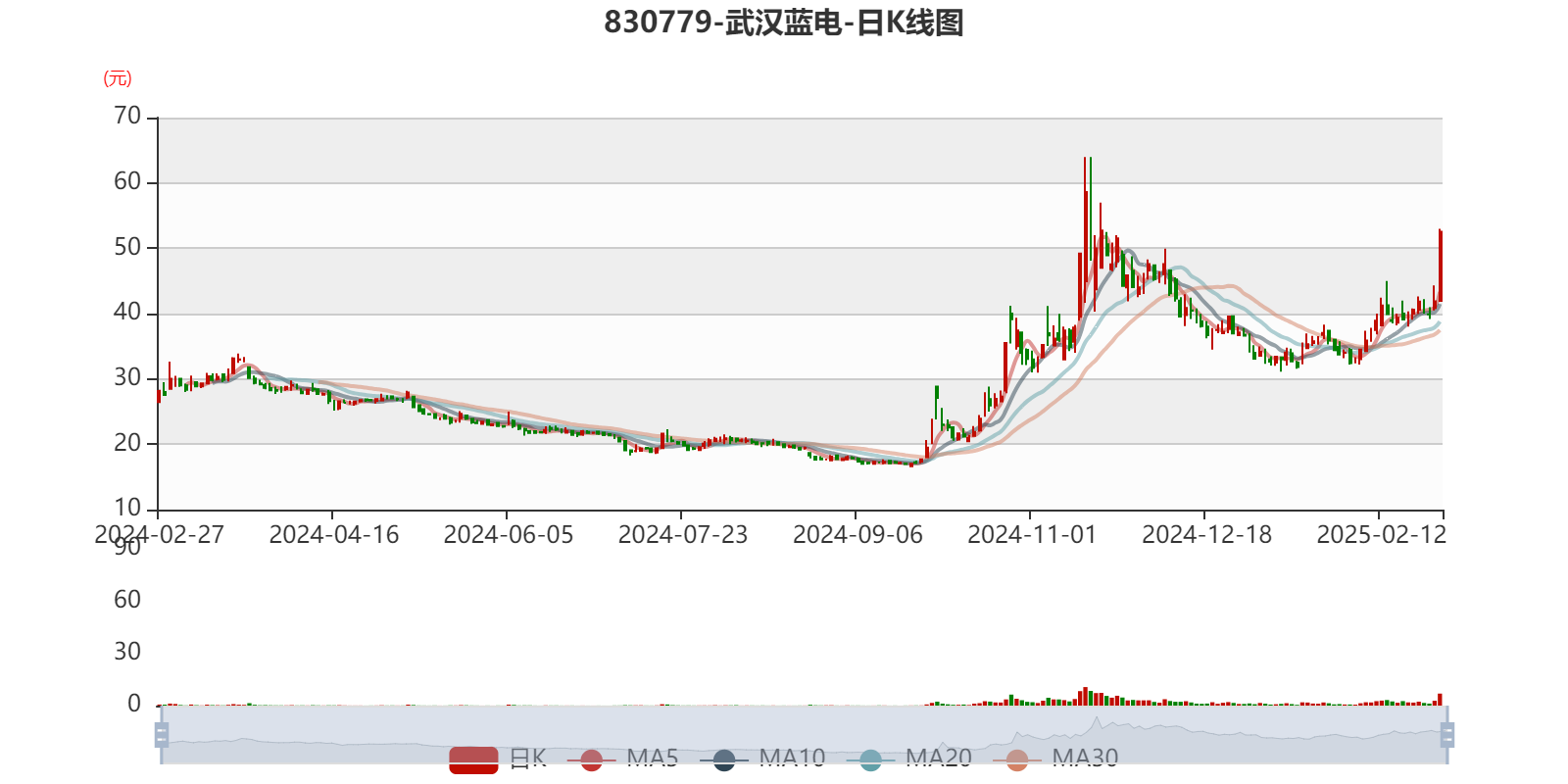 中证智能财讯武汉蓝电(830779)2月27日晚间披露2024年业绩快报,公司实现营业收入1.75亿元,同比下降14.1%;归母净利润7360.54万元,同比下降25.93%;扣非净利润6658.05万元,同比下降25.6%;基本每股收益1.29元,加权平均净资产收益率为14.23%。以2月27日收盘价计算,武汉蓝电目前市盈率(TTM)约为40.82倍,市净率(LF)约5.87倍,市销率(TTM)约17.13倍。
