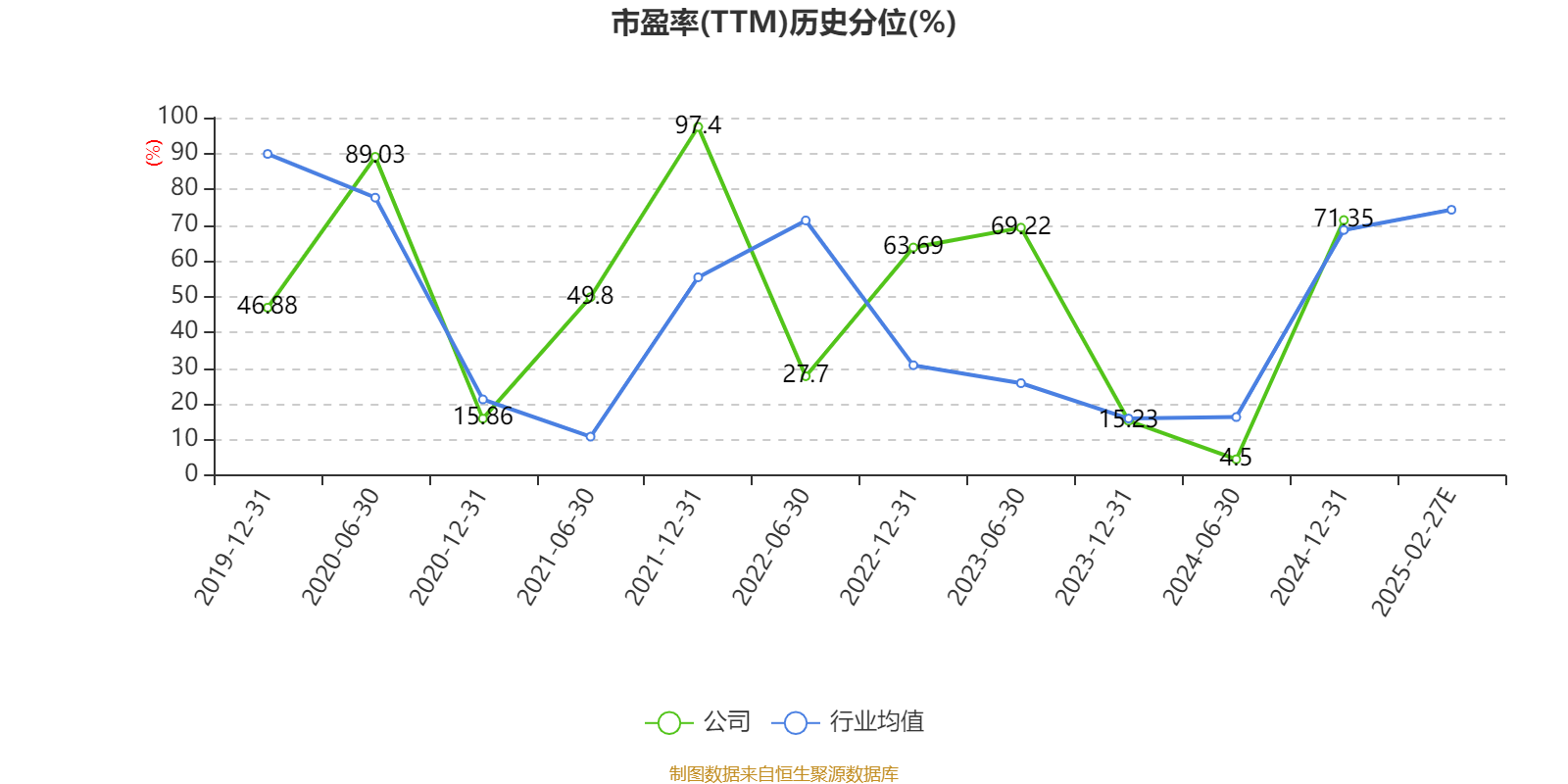 市盈率、市净率为负时,不显示当期分位数,会导致折线图中断。