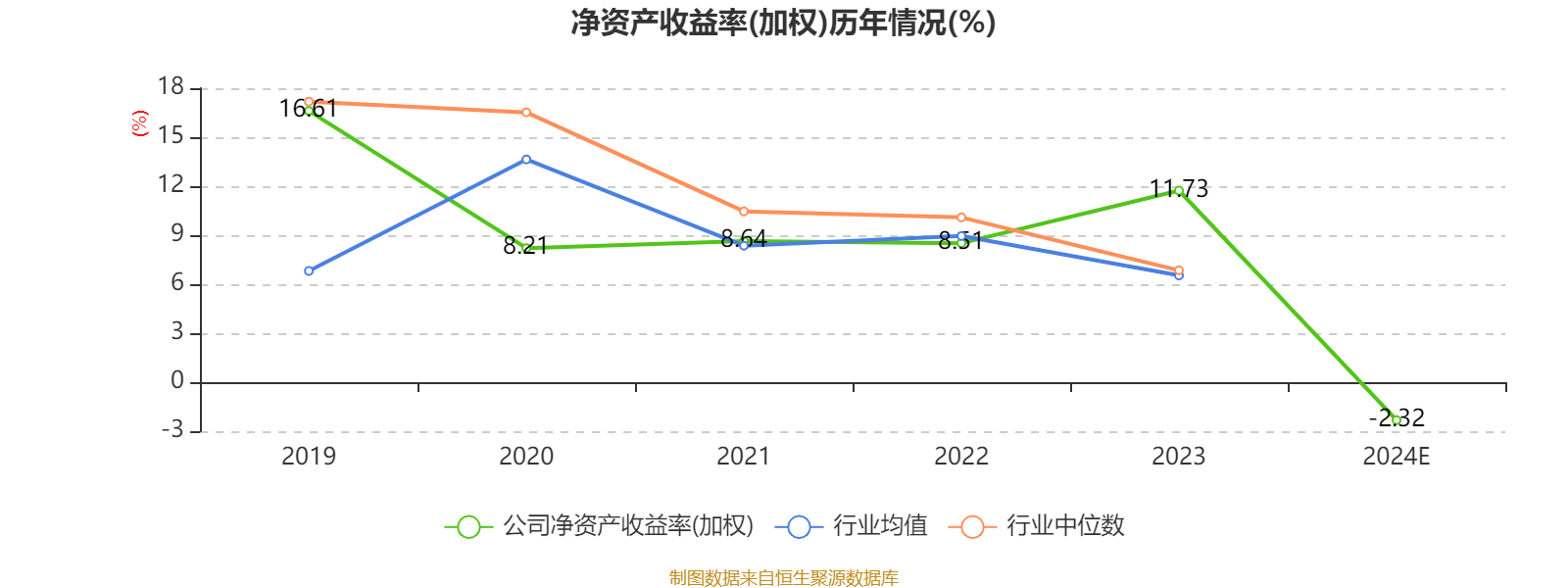 数据显示,2024年公司加权平均净资产收益率为-2.32%,较上年同期下降14.05个百分点。