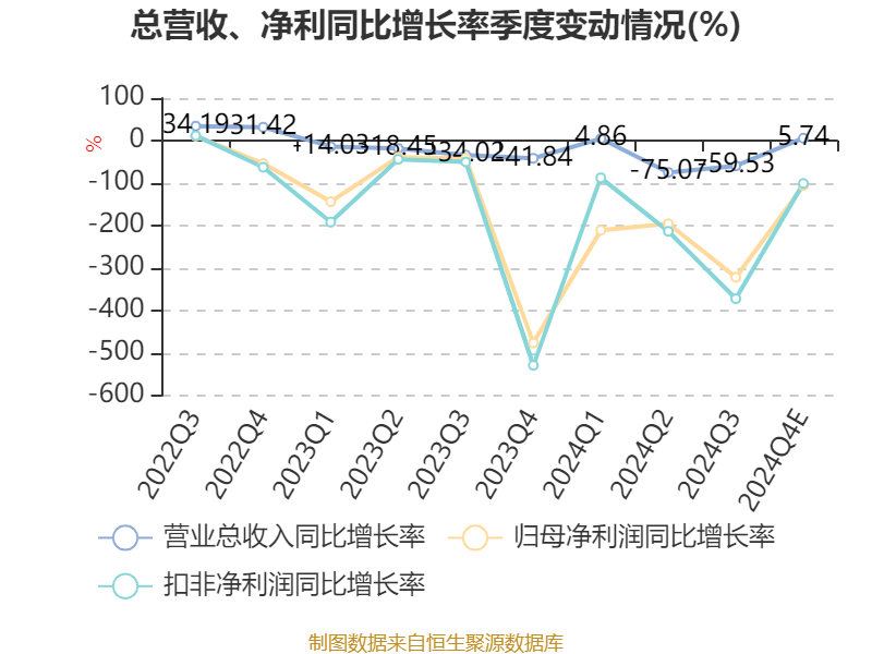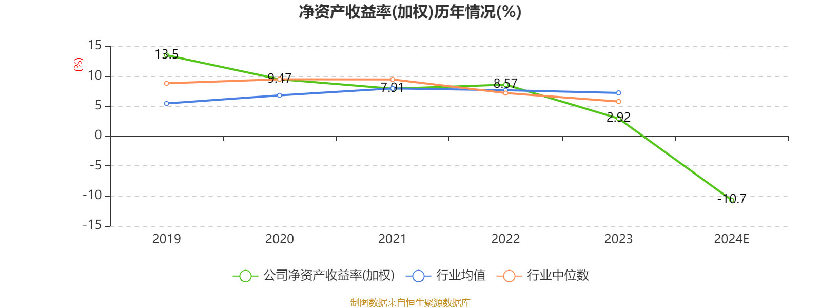 数据显示,2024年公司加权平均净资产收益率为-10.7%,较上年同期下降13.62个百分点。