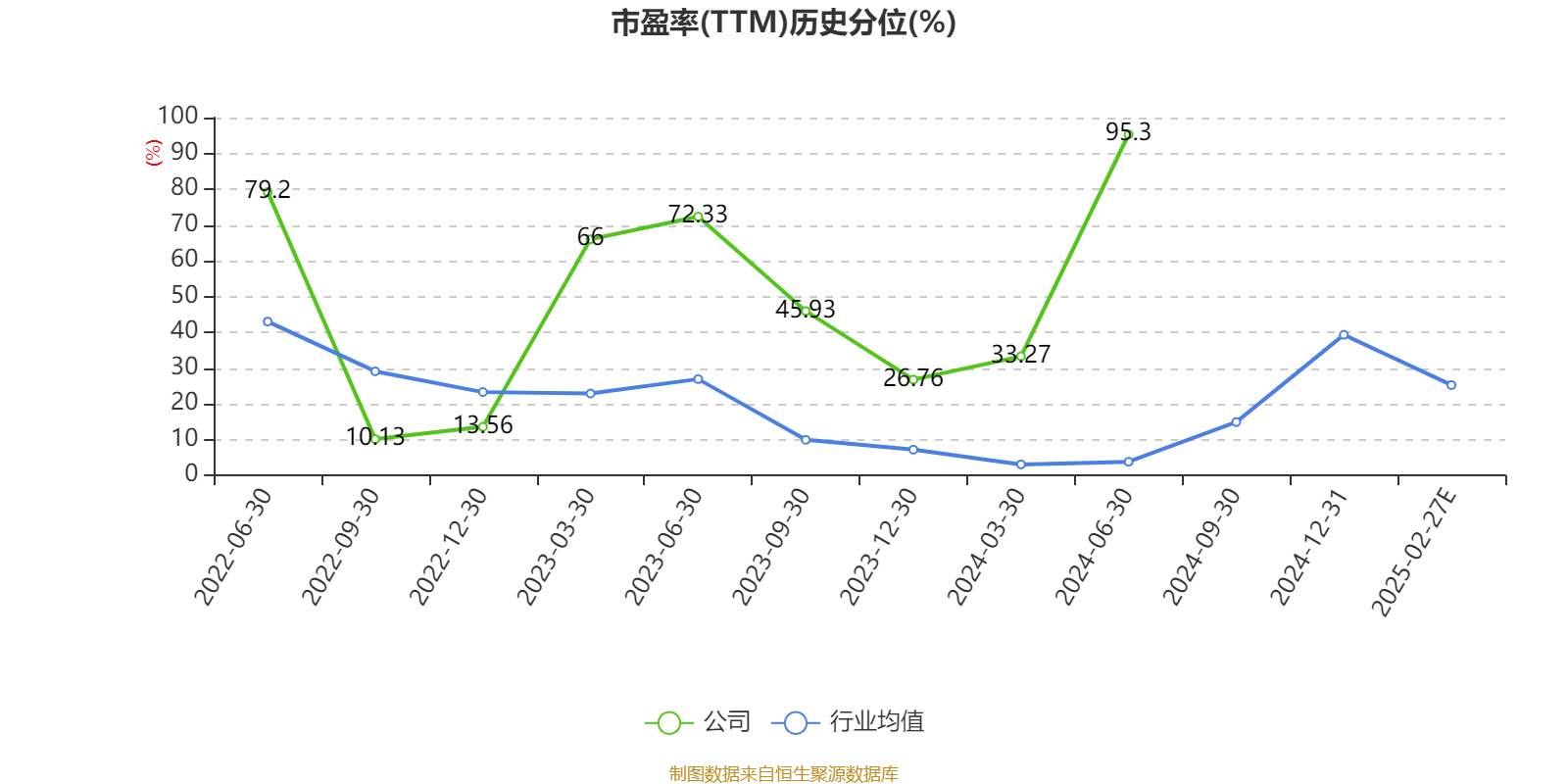 市盈率、市净率为负时,不显示当期分位数,会导致折线图中断。
