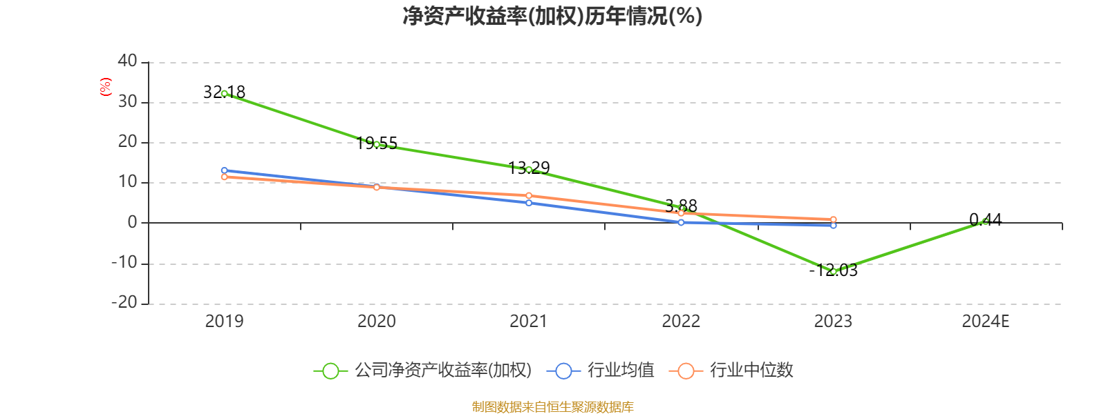 数据显示,2024年公司加权平均净资产收益率为0.44%,较上年同期上升12.47个百分点。