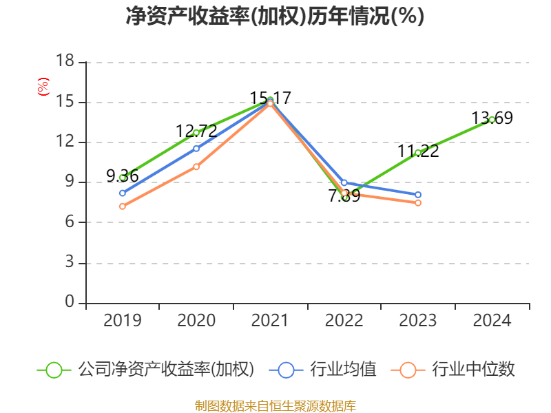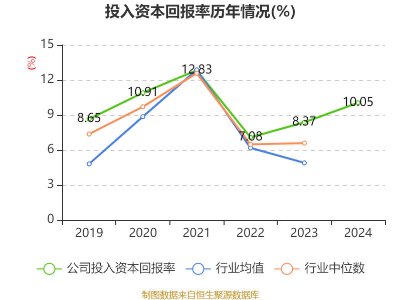 数据显示,2024年公司加权平均净资产收益率为13.69%,较上年同期上升2.47个百分点。公司2024年投入资本回报率为10.05%,较上年同期上升1.68个百分点。