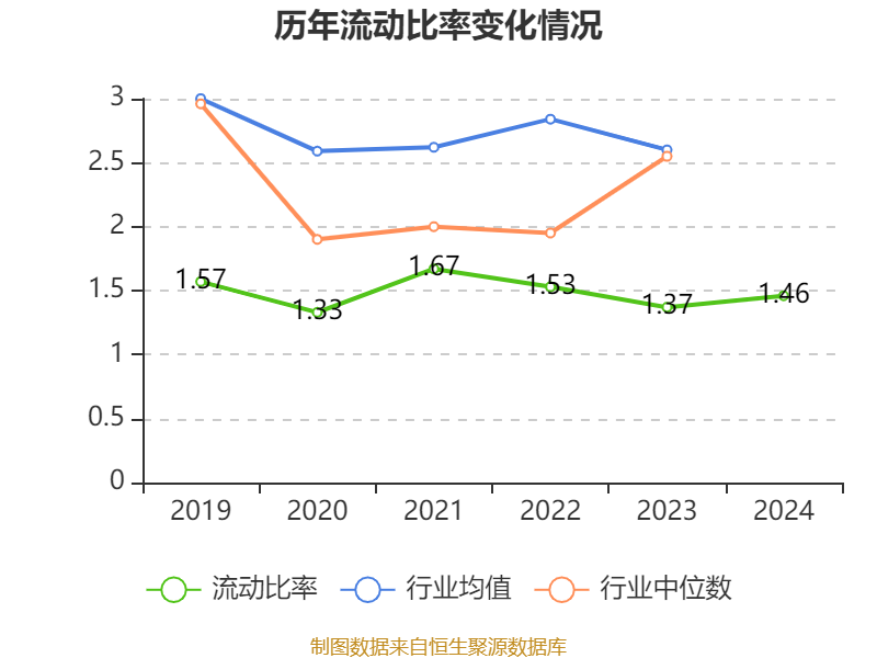 2024年,公司流动比率为1.46,速动比率为1.15。