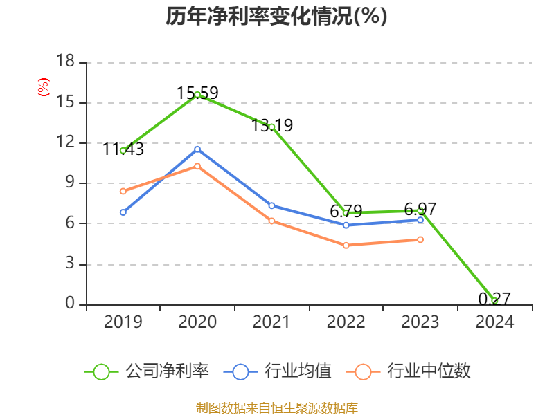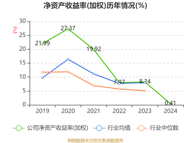 数据显示,2024年公司加权平均净资产收益率为0.41%,较上年同期下降7.83个百分点。公司2024年投入资本回报率为0.25%,较上年同期下降6.39个百分点。