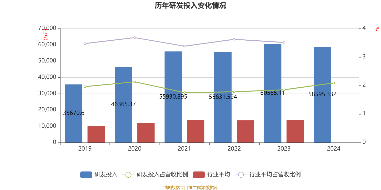 2024年全年,公司研发投入金额为5.86亿元,同比下降3.25%;研发投入占营业收入比例为2.09%,相比上年同期上升0.24个百分点。此外,公司全年研发投入资本化率为0%。