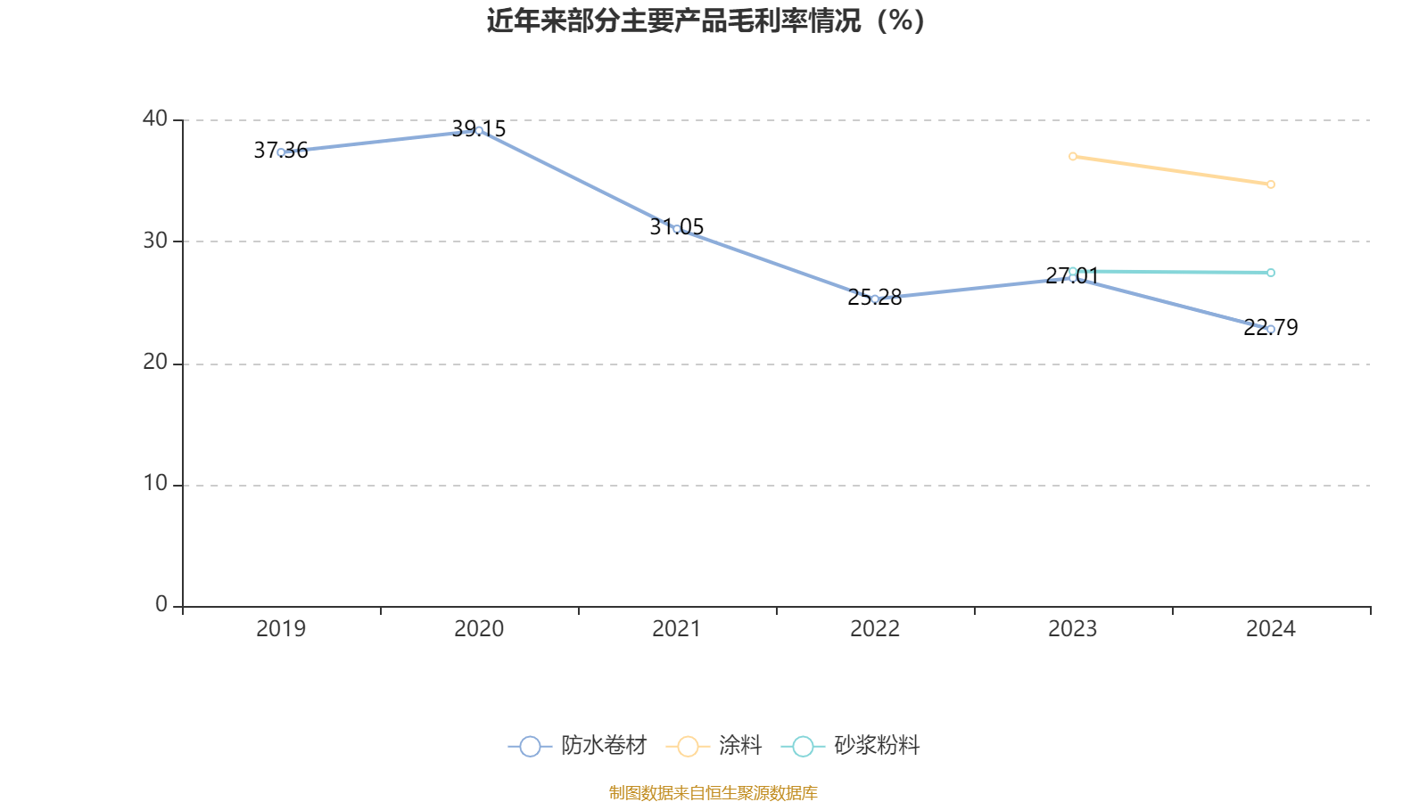 资料显示,公司追求高质量稳健发展,目前已形成以主营防水业务为核心,民用建材、砂浆粉料、建筑涂料、节能保温、胶粘剂、管业、建筑修缮、新能源、非织造布、特种薄膜、乳液等多元业务为延伸的建筑建材系统服务商。