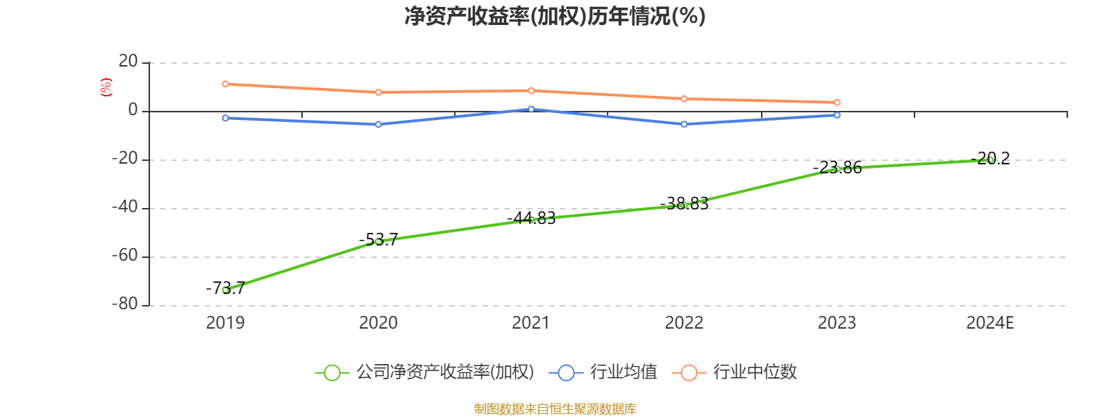 数据显示,2024年公司加权平均净资产收益率为-20.2%,较上年同期上升3.66个百分点。