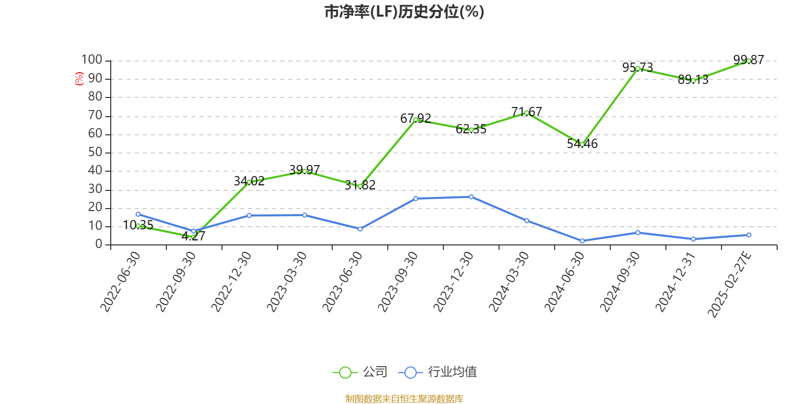 市盈率、市净率为负时,不显示当期分位数,会导致折线图中断。