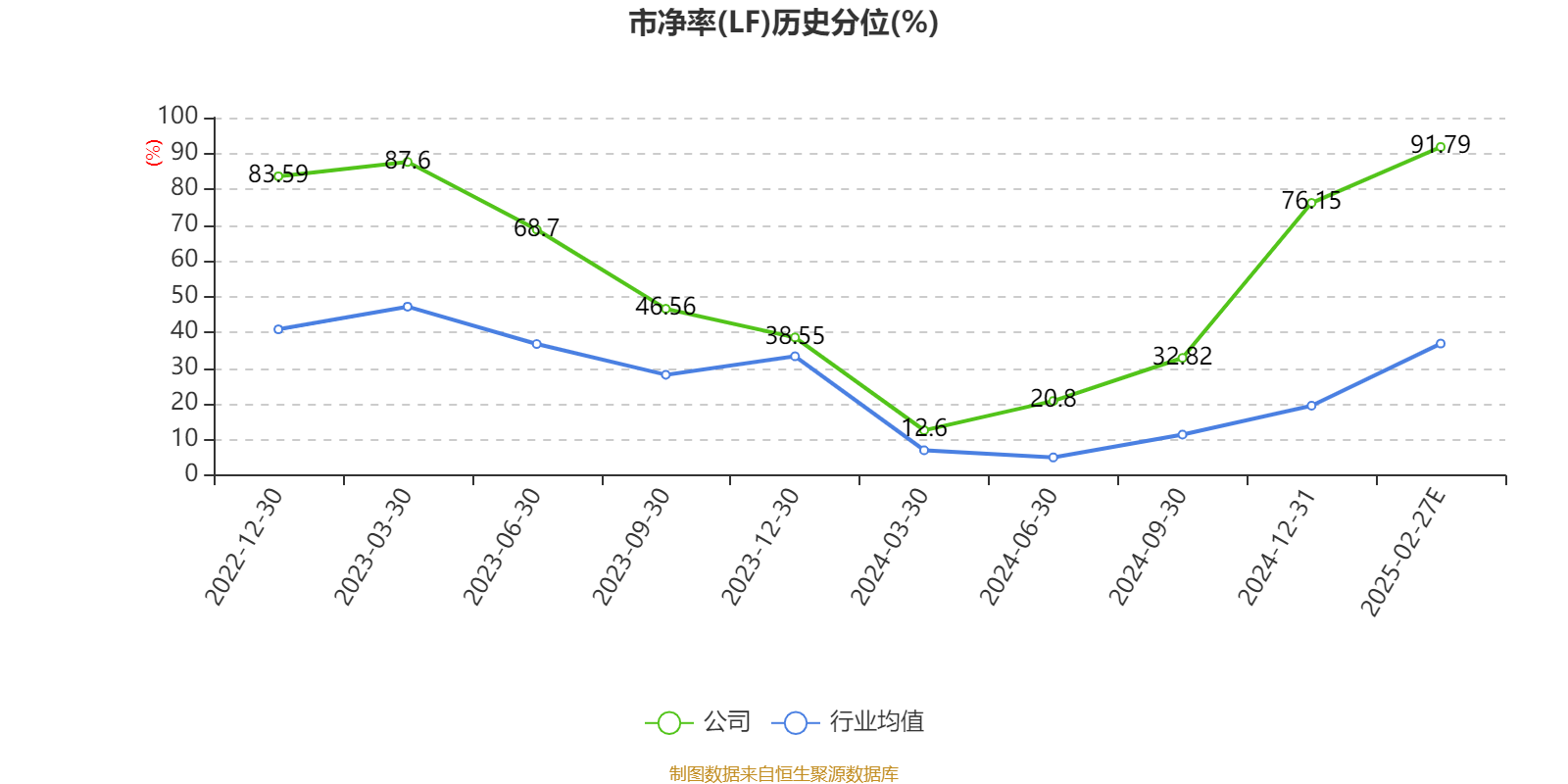 市盈率、市净率为负时,不显示当期分位数,会导致折线图中断。