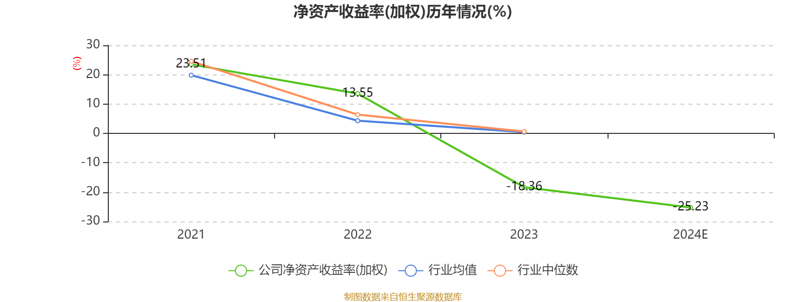 数据显示,2024年公司加权平均净资产收益率为-25.23%,较上年同期下降6.87个百分点。