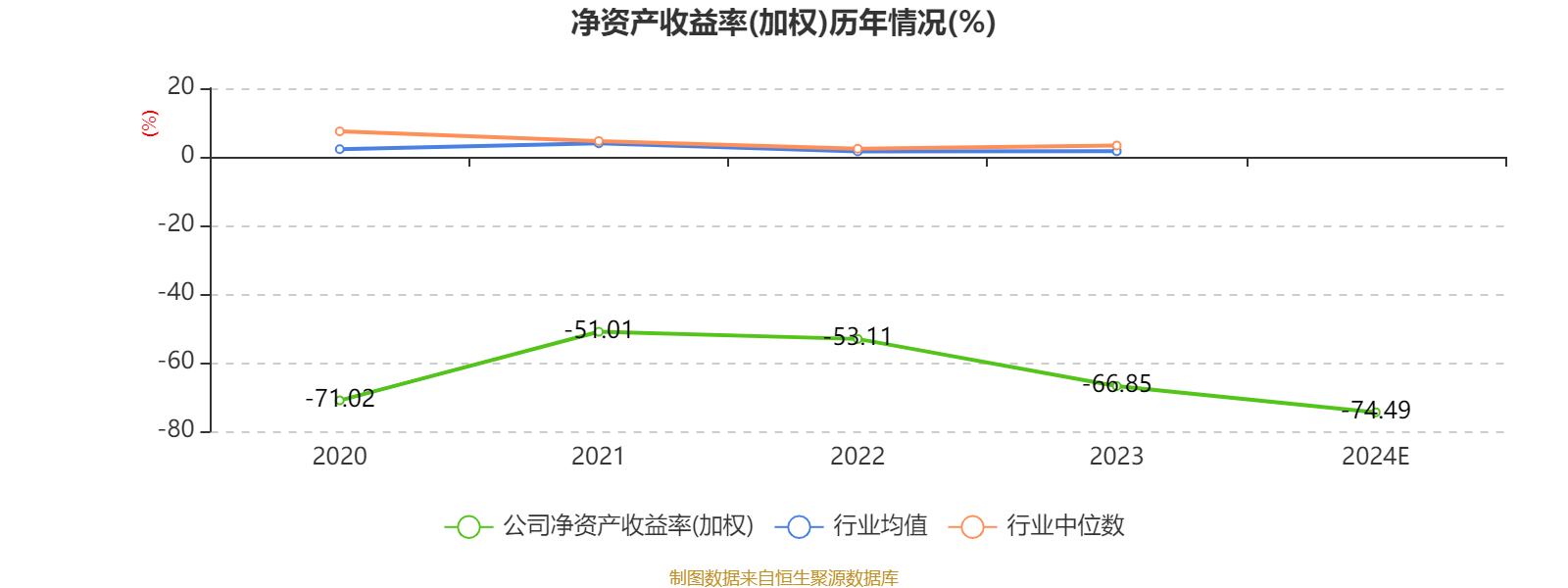 数据显示,2024年公司加权平均净资产收益率为-74.49%,较上年同期下降7.64个百分点。