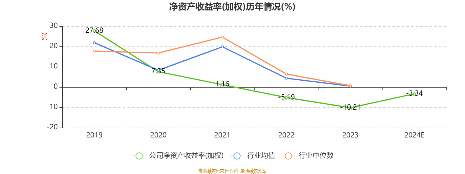 数据显示,2024年公司加权平均净资产收益率为-3.34%,较上年同期上升6.87个百分点。