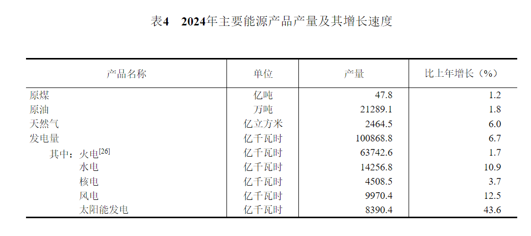初步核算,全年一次能源生产总量[25]49.8亿吨标准煤,比上年增长4.6%。