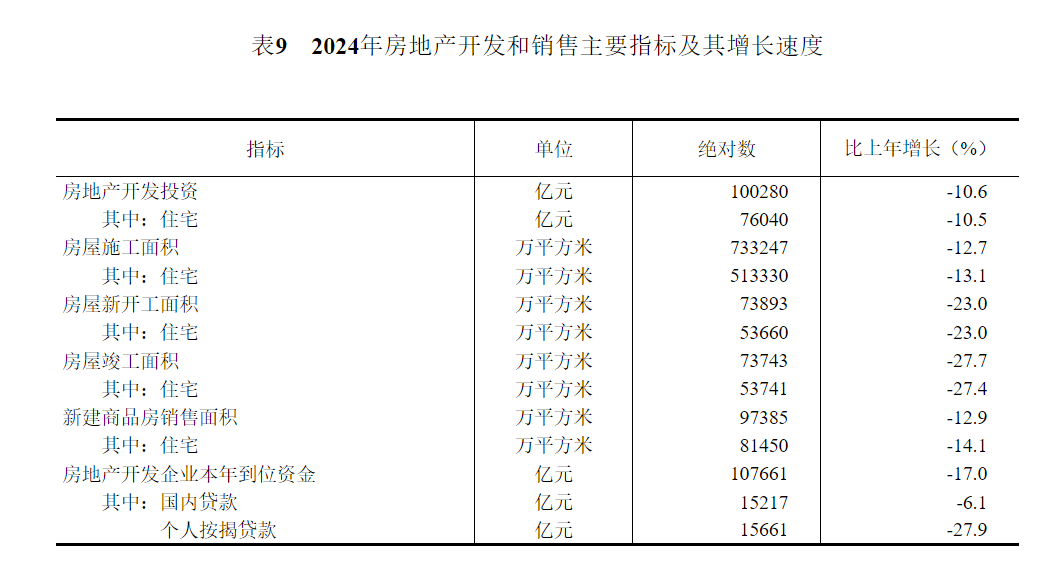 [47]根据第五次全国经济普查结果,对房地产开发、新建商品房销售等指标历史数据进行了修订,2024年增速按可比口径计算。