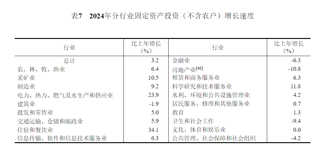 [41]由于投资统计制度方法改革、第五次全国经济普查数据修订、统计执法检查等因素,2024年固定资产投资相关指标增速按可比口径计算。