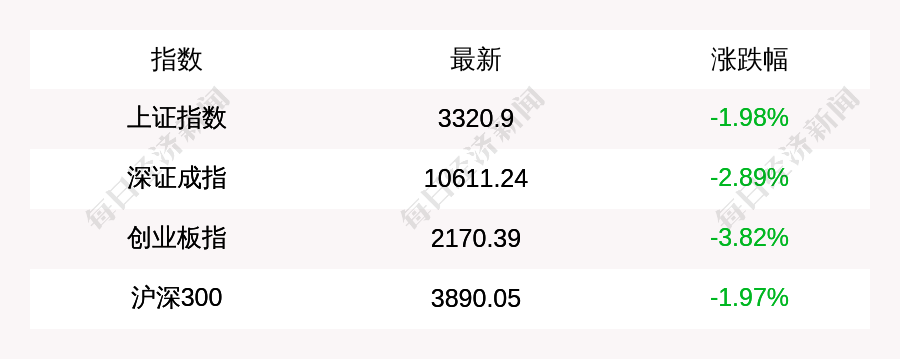 每经AI快讯:北京时间2月28日15:00,上证指数收盘下跌67.16点,跌幅为1.98%,报收3320.9点,成交额7580.55亿元;深证成指收盘下跌316.27点,跌幅为2.89%,报收10611.24点,成交额11089.69亿元;创业板指收盘下跌86.12点,跌幅为3.82%,报收2170.39点,成交额5309.02亿元;沪深300收盘下跌78.07点,跌幅为1.97%,报收3890.05点,成交额4203.08亿元。券商股持续走低,中金公司尾盘逼近跌停;算力租赁概念震荡走低,奥飞数据跌超10%;金融科技概念股持续走低,东华软件跌停。