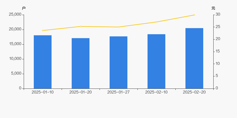 自2025年1月20日以来,公司股东户数连续3期上涨,截至目前增幅为19.91%。2025年1月20日至2025年2月20日区间股价上涨18.46%。
