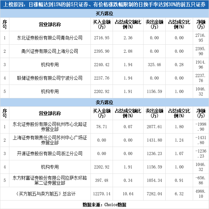 多主力现身龙虎榜,宏景科技涨停(02-28)