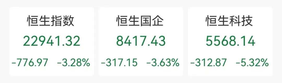 2月28日,2月的最后一个交易日,香港三大股指均出现回调。恒生指数跌3.28%,报22941.32点,2月涨13.43%;恒生科技指数跌5.32%,报5568.14点,2月涨17.88%;恒生中国企业指数跌3.63%,报8417.43点,2月涨14.02%。大市成交4062.64亿港元。南向资金净买入119亿港元。