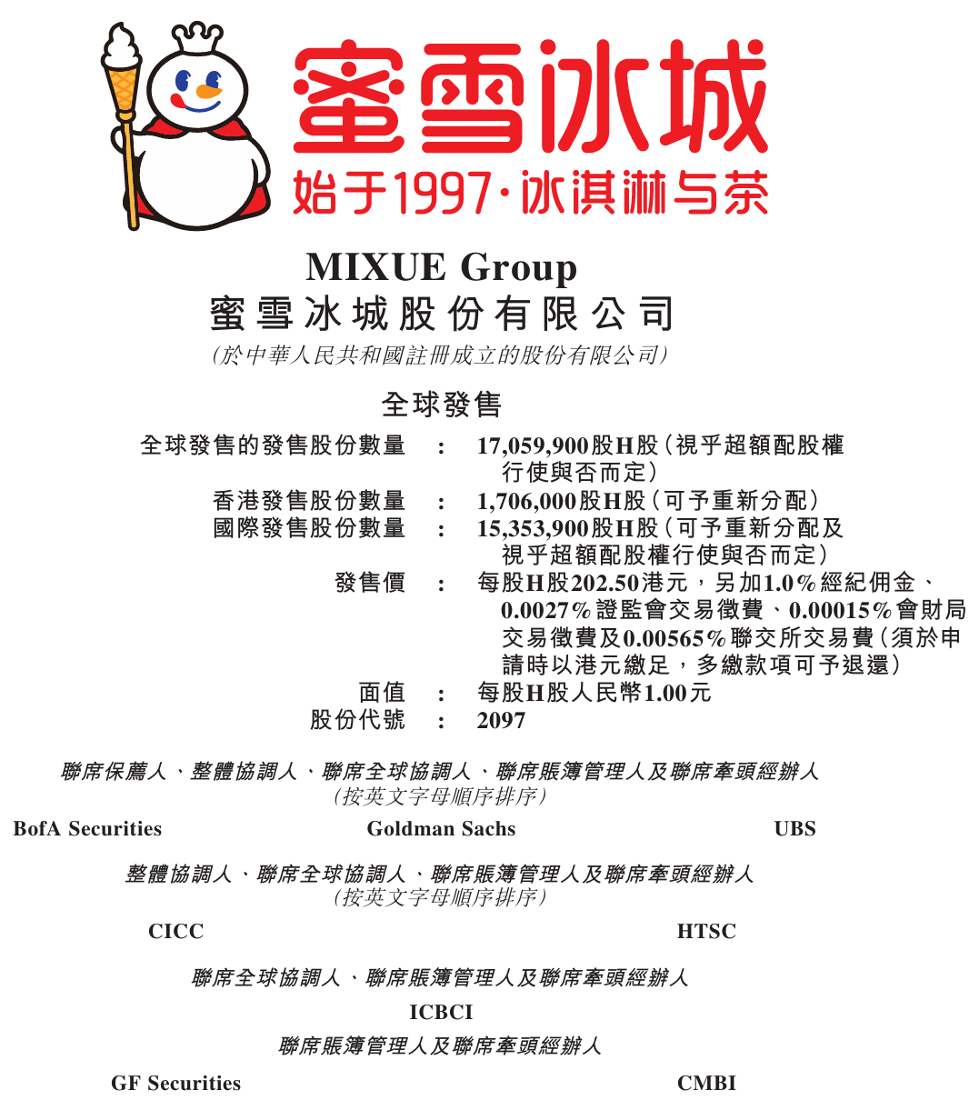 蜜雪冰城将于3月3日(下周一)在香港挂牌上市。2月28日,公司股票在香港暗盘交易中一度上涨41%。公司招股价为202.50港元,每手100股。