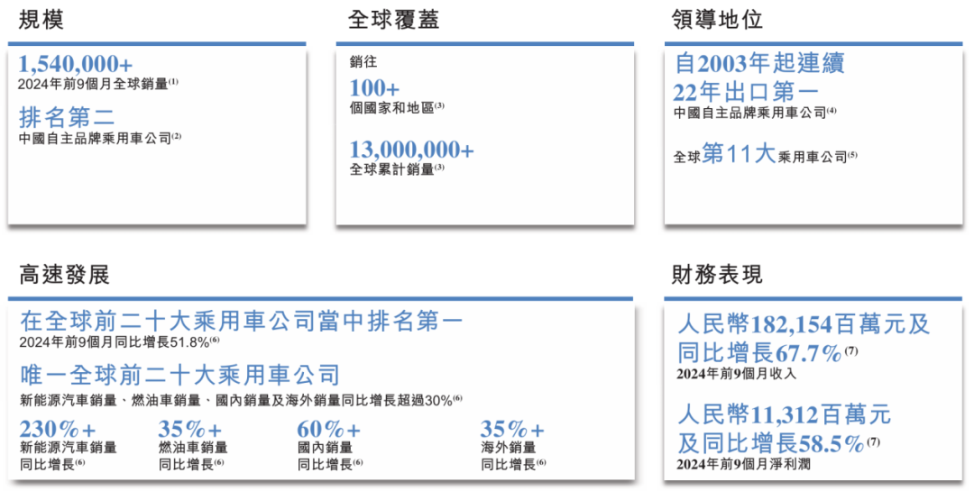 招股书显示,以截至2024年9月30日止九个月的全球销量计算,奇瑞汽车是中国第二大自主品牌乘用车公司和全球第十一大乘用车公司。