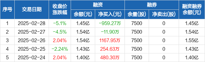 复旦复华融资融券信息显示,2025年2月28日融资净偿还959.27万元;融资余额1.45亿元,较前一日下降6.21%