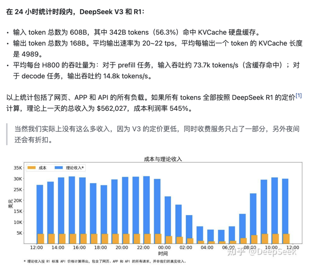 DeepSeek补充到,当然公司实际上没有这么多收入,因为V3的定价更低,同时收费服务只占了一部分,另外夜间还会有折扣。